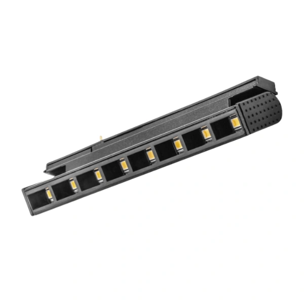 Luminario para micro track magnético, puntual rectangular dirigible, de LED, blanco cálido, 1 Watt, óptica 24°, aluminio acabado negro, 24 V cc, protección IP20