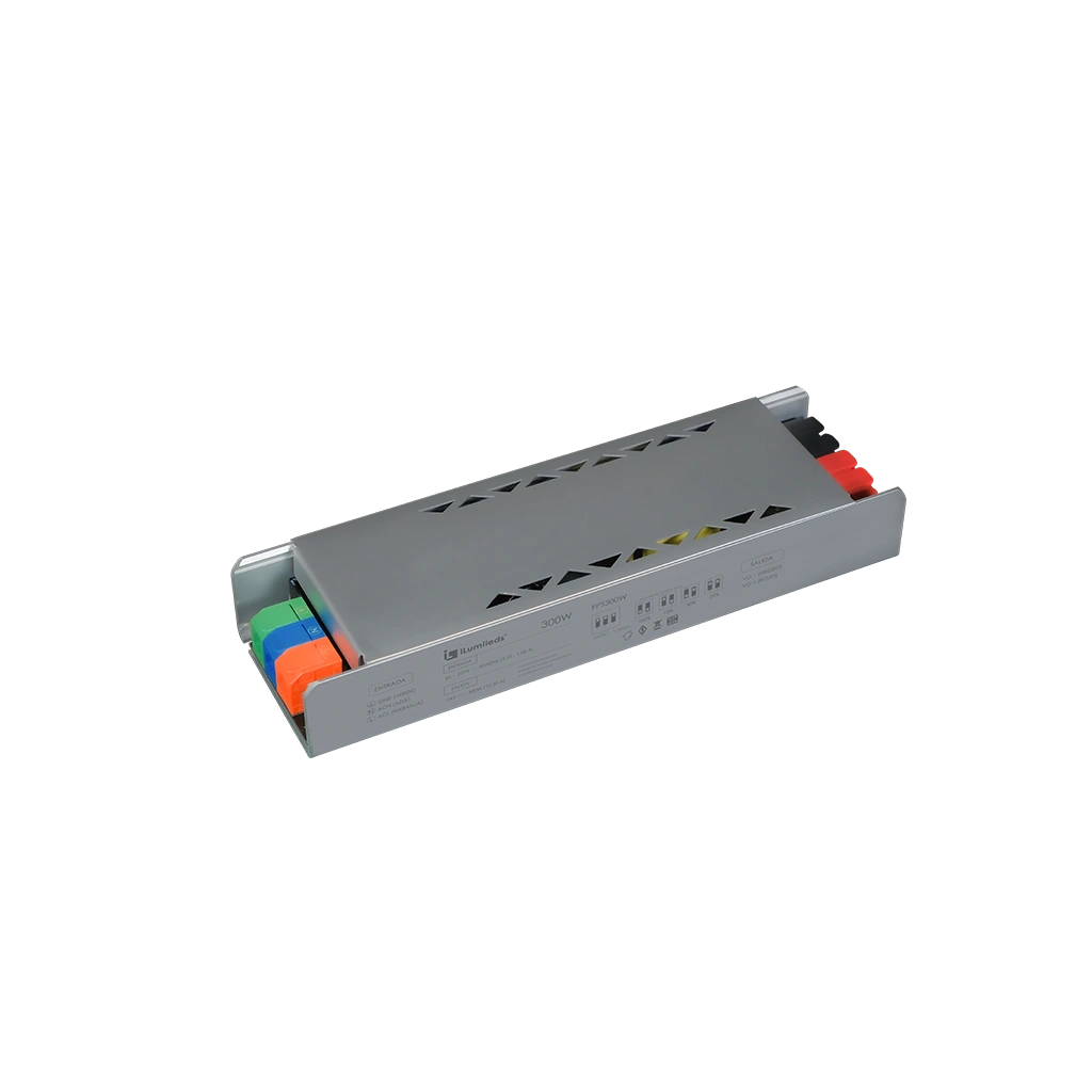 Fuente de poder conmutada para tira extraplana de LED, con selector de brillo y efecto de entrada, 270 Watts máximo, alimentación 85 – 277 V ca, salida 24 V cc, protección IP50