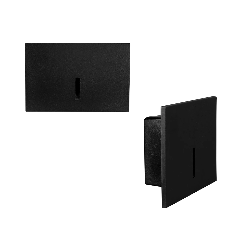 Luminario de LED para cortesía en pared, blanco cálido, 2 Watts, óptica 120°, luz indirecta hacia abajo, rectangular, de empotrar, policarbonato acabado blanco, con sensor de movimiento, 85-265V ca, protección IP65