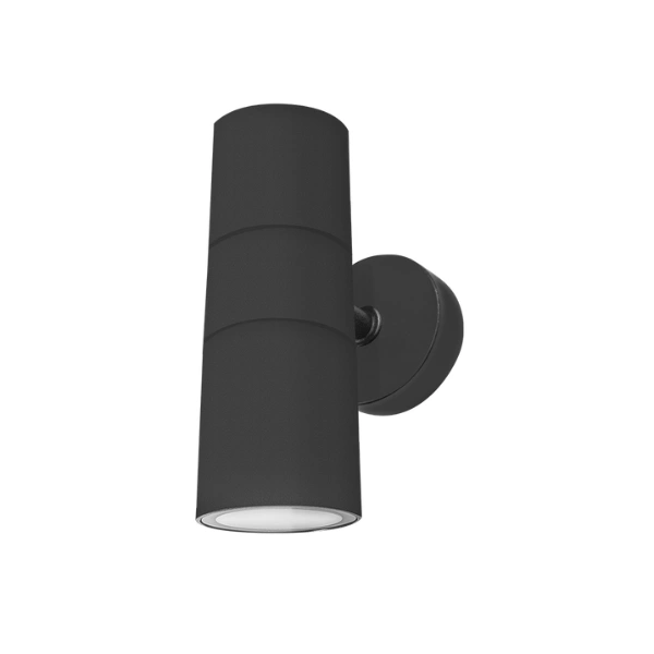 Luminario para 2 lámparas GU10, 20 Watts, 10 Watts máx. en cada base GU10, cilíndrico, policarbonato acabado negro con mica de policarbonato transparente, salida superior e inferior con base rotatoria 360°, no incluye lámparas, 100-240V ca, protección IP44