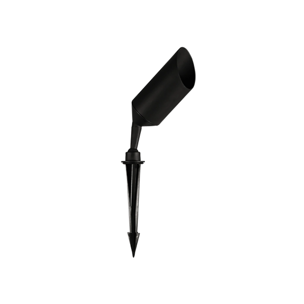 Luminario de LED para piso, tipo estaca con visera, base GU10, 35 Watts máx., de sobreponer, policarbonato acabado negro (incluye estaca para enterrar en piso), 85-265V ca, protección IP65