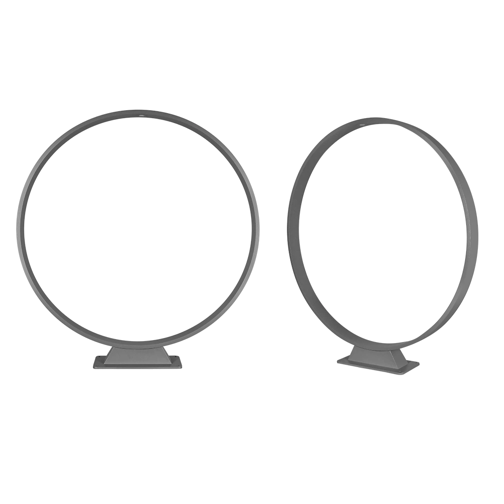 Luminario de LED tipo bolardo circular de 30 cm y 40 cm de diámetro, blanco cálido, 5 Watts y de 60 cm de diámetro, blanco cálido, 10 watts óptica de 120°, de sobreponer, aluminio acabado gris, acrílico difuso, 100-240V ca, protección IP54