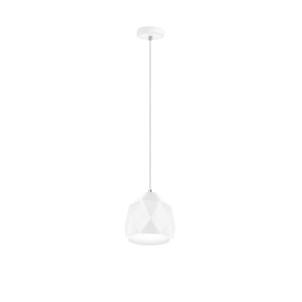 Luminario de suspender, con base E27 (sin lámpara) 25 Watts máximo, óptica 120° de sobreponer, yeso acabado blanco, protección IP20.
