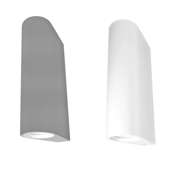 Luminario de pared, con 2 bases GU10 (sin lámpara) de 25 Watts máximo cada una, óptica 120° de sobreponer, concreto acabado gris, protección IP20.