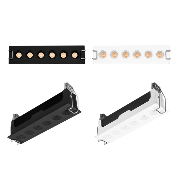 Luminario de techo, rectangular, puntual, slim fijo, de LED, blanco cálido, 9 Watts, óptica de 36°, de empotrar, aluminio acabado negro, 85 – 277 V ca, protección IP20
