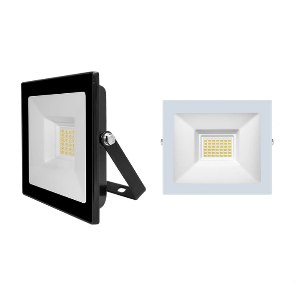 Luminario tipo reflector plano, de led, blanco cálido, 50 Watts, óptica 120°, rectangular, de sobreponer dirigible, aluminio acabado negro y cristal templado, 100-240V ca, protección IP65