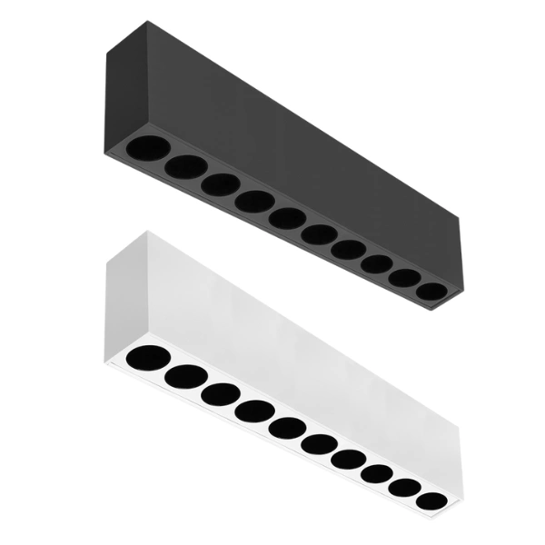 Luminario de techo, rectangular puntual, de led marca Bridgelux, blanco cálido, 20 Watts, óptica de 36°, de sobreponer, aluminio acabado negro, 85-277 V ca, protección IP20.