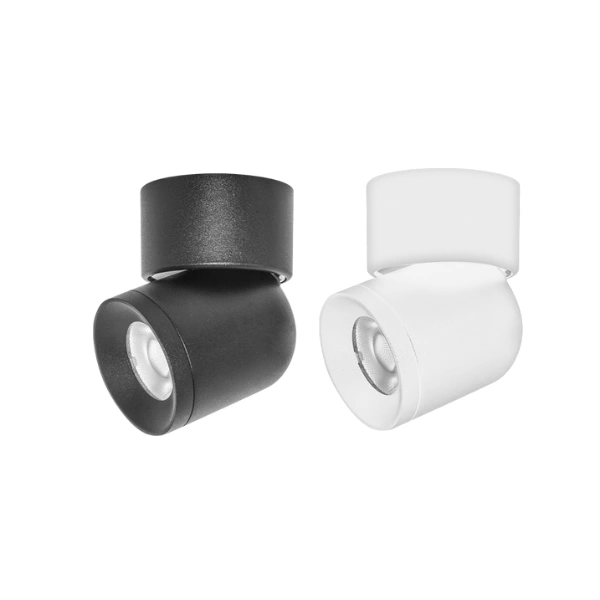 Luminario para mini riel magnético, cilíndrico de sobreponer dirigible, de LED, blanco cálido, 7 Watts, óptica 24°, aluminio acabado negro, 48 V cc, protección IP20.