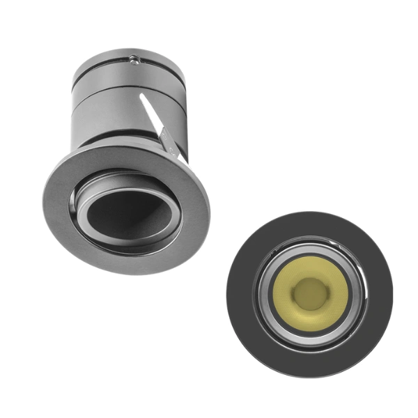 Luminario de techo, de LED, dirigible blanco cálido, 7 Watts, óptica 15°, redondo, de empotrar, aluminio acabado negro, 85-265V ca, protección IP20.