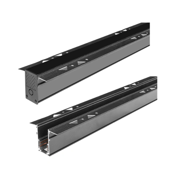 Kit de riel magnético para empotrar trimless acabado negro,incluye riel magnético de 3 m, cubierta de 3 m y kit de 2 tapas laterales.