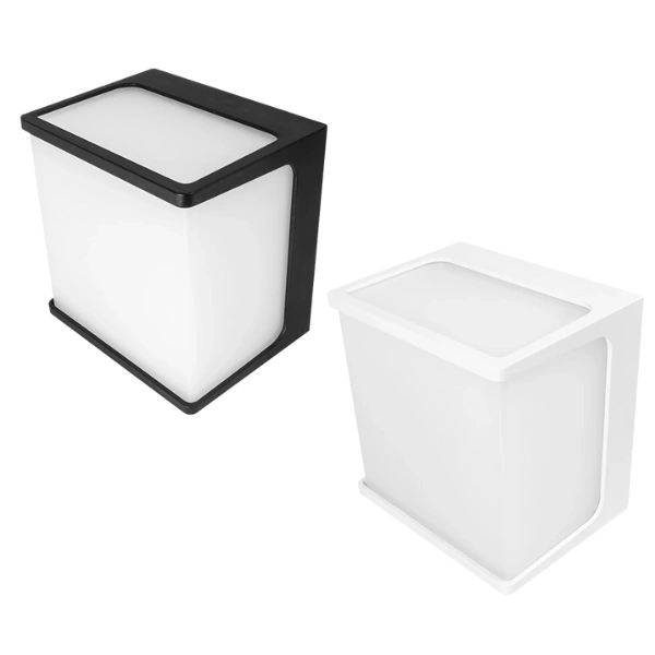 Luminario de pared, de led, blanco cálido, 8 Watts, cubo salida de luz directa, de sobreponer, policarbonato acabado negro / blanco, 85-265V ca, protección IP65