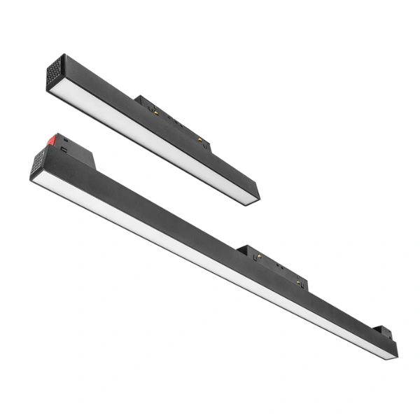 Luminario para riel magnético tipo flood, de led, blanco cálido, 20 Watts,óptica 120°, aluminio acabado negro, 48V cc, protección IP20.