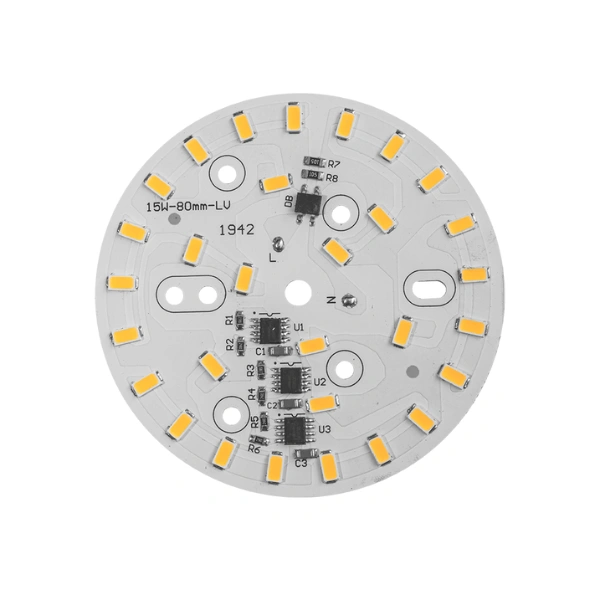 Lámpara tipo pastilla, de led, blanco cálido, 15 Watts, óptica 120°, redondo, 130V ca, protección IP20.